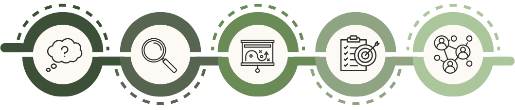 Strategiprocessen kan opdeles i fem faser. Hver fase i processen indeholder et eller flere centrale spørgsmål, som skal besvares, før I bevæger jer videre i processen.